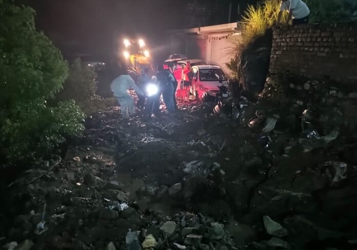 उत्तरकाशी: जिला मुख्यालय व आसपास के क्षेत्रों में अत्यधिक वर्षा के बाद रात करीब पौने दो बजे वरुणावत की तलहटी में स्थित गोफियारा जल संस्थान कालोनी व स्टोर के निकट पहाड़ी से भूस्खलन होने से काफी मात्रा में पत्थर व मलबा आने से हड़कंप मच गया। गंगोत्री राष्ट्रीय राजमार्ग व गोफियारा कालोनी में सड़कों पर खड़े कई वाहन मलबे में दब गए हैं। वाहन स्थानीय लोगों के बताए जा रहे हैं। फिलहाल जनहानि की सूचना नहीं है।