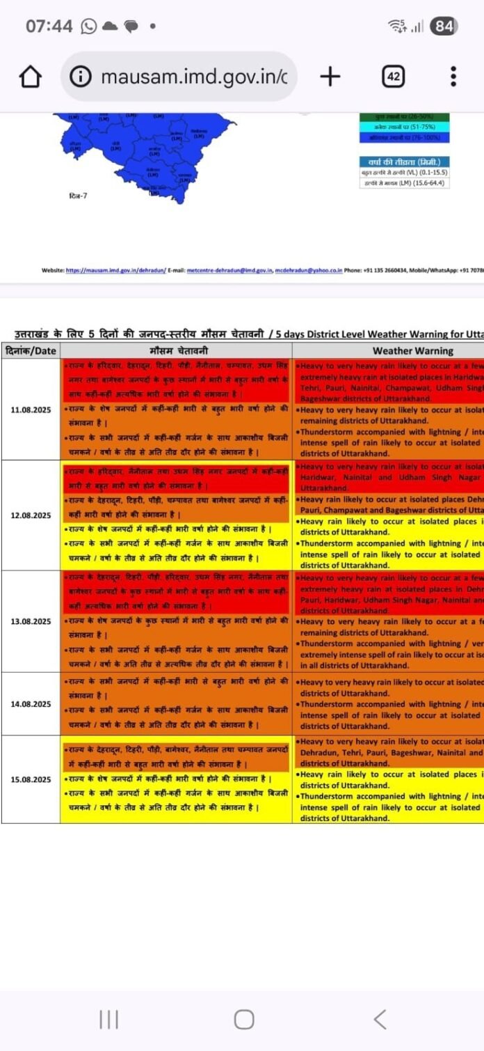 मौसम विभाग ने हरिद्वार, नैनीताल, ऊधम सिंह नगर, देहरादून, टिहरी, पौड़ी, चंपावत और बागेश्वर जिलों के लिए अलर्ट जारी किया है। इन जिलों में आज भारी बारिश होने की संभावना है।